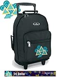 Our wheeled backpack features a sturdy telescopic handle, a double wheel base, two exterior pockets, a mesh water bottle pocket, padded shoulder straps, and two optional handles. The main compartment opens super-wide for easy accessibility. Made of durable 600 Denier Fabric and measuring 13" x 17" x 6", this is a large easy-to-use backpack for school, overnights, and travel.