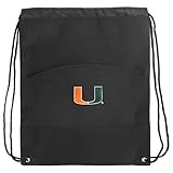 University of Miami Backpack Bag Drawstring Black Cinch UM Logo Draw String Back Pack - For Boys Girls Students or Adults